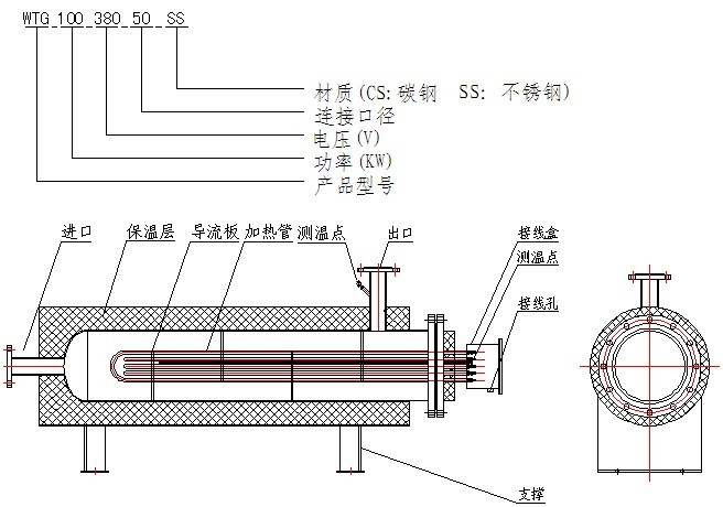 1。管道加熱器采用了不銹鋼筒體,體積小、占地少、移動方便,具有較強的抗腐蝕能力,在不銹鋼內(nèi)膽和不銹鋼外殼之間采用了加厚保溫層,失溫程度最低,保持溫度,節(jié)省電能。
